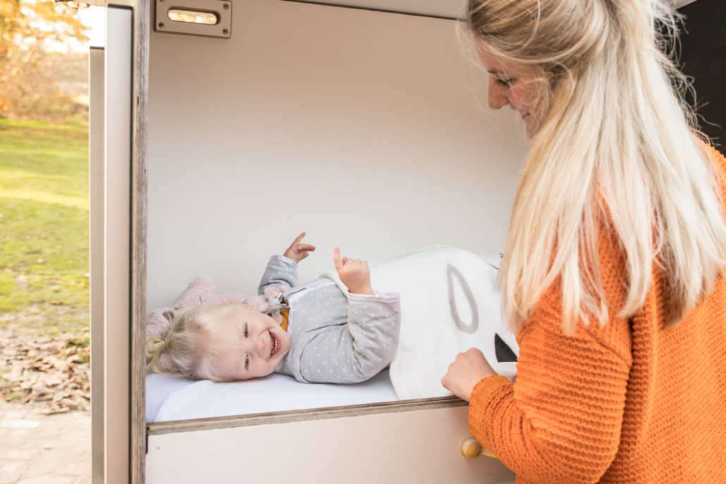 De Kindertuin bied kinderen de mogelijkheid om naast binnen ook buiten te kunnen slapen.